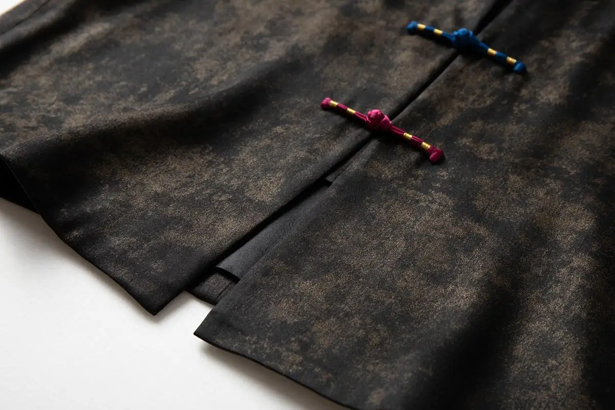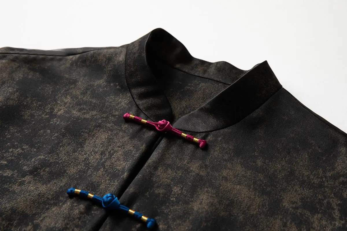 The placket is dotted with hand-made Chinese plate buckles. and derived from the traditional Chinese cultural image, each of which is unique.