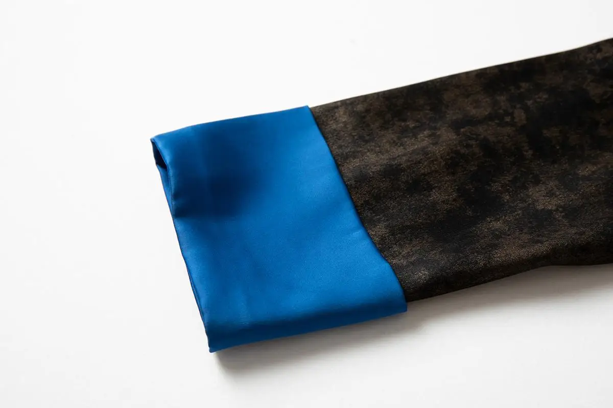 It uses more than 18 Momme of heavy pounds of Xiang Yun Sha silk, the silhouette draws on the classic Chinese long shirt, and the lines are smooth and cleanness.