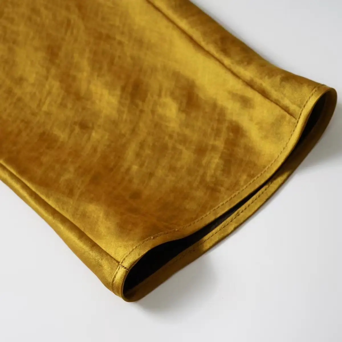 This upper shirt adopts the technology of Shunde intangible cultural heritage Xiang Yun Sha, and innovates and develops the process of ‘ gold foil crack ‘ on the basis of traditional yam dip.The 24 K gold powder and natural dioscorea cirrhosa juice were mixed in a specific proportion.