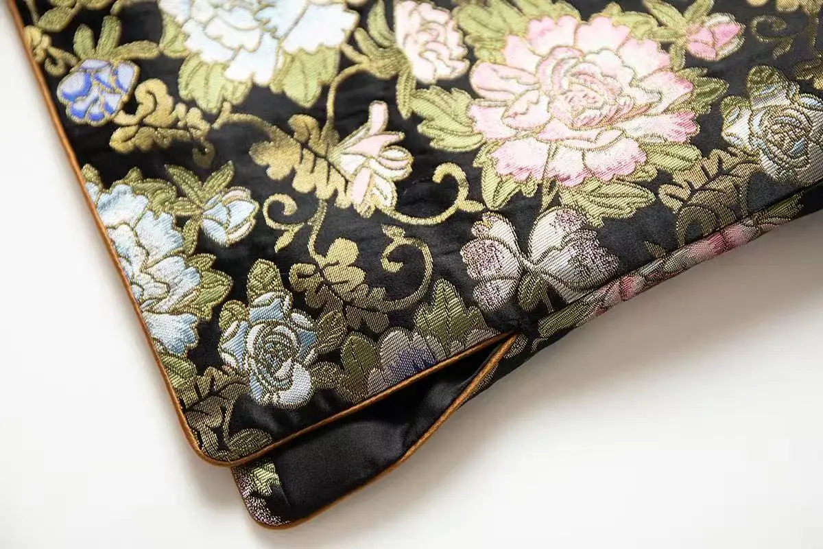 This vest is woven by hand on a wooden loom, with Emperor Huang as the ground, and four seasonal flowers such as peony, lotus, chrysanthemum and tea flower are woven by using the technique of ‘ colored gold clip makeup ‘.