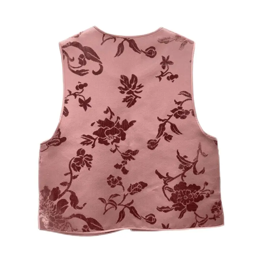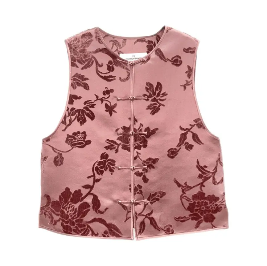 Pink Folded Peony Zhang Velvet Satin Silk Vest adopts the traditional Zhang Velvet weaving technique to reproduce the luxurious texture of the Ming and Qing court imperial fabrics.
