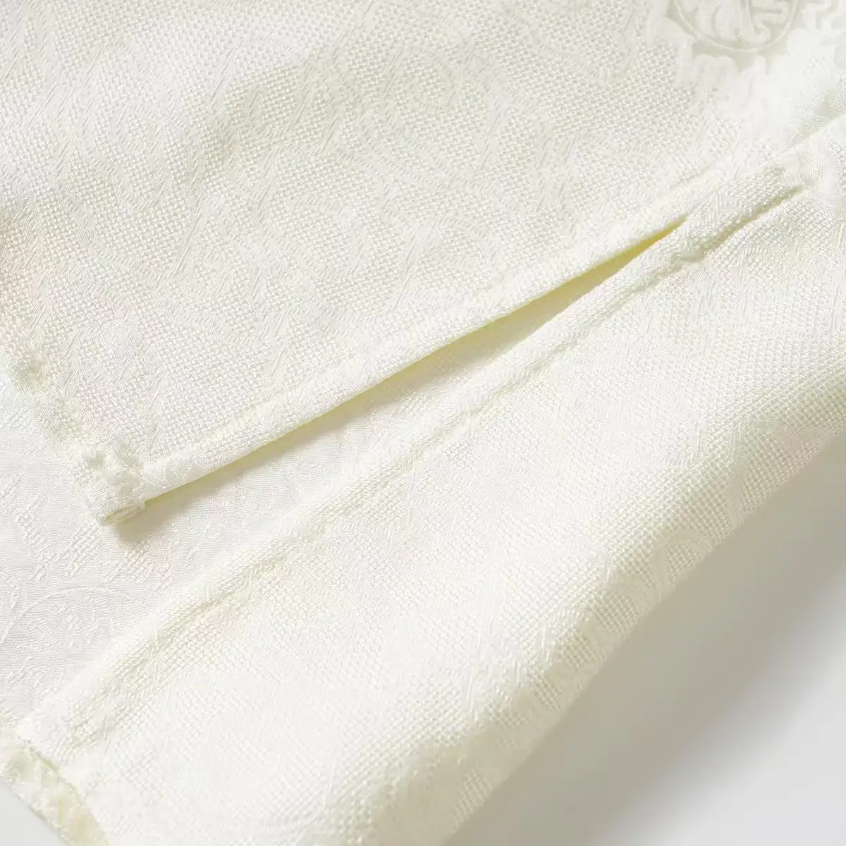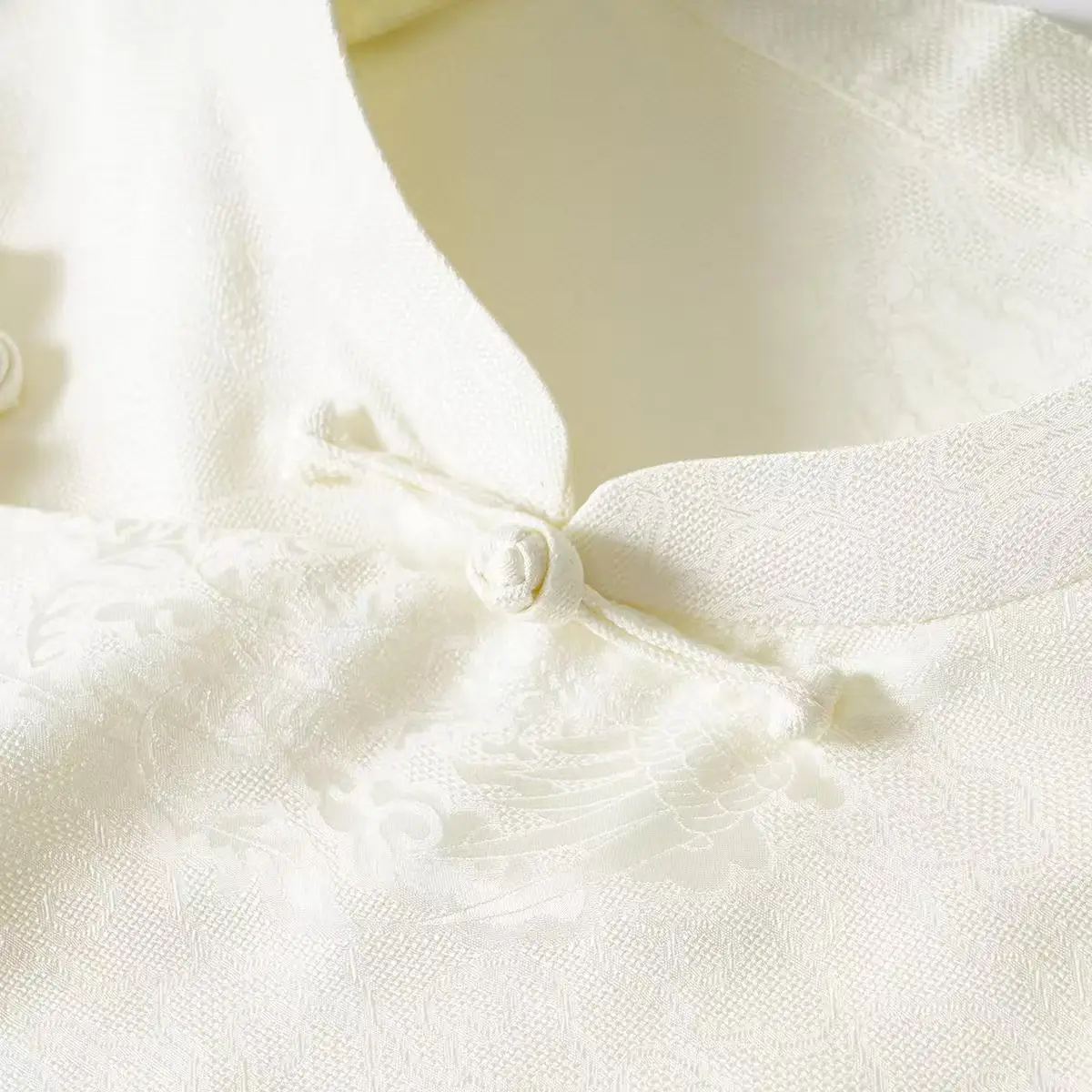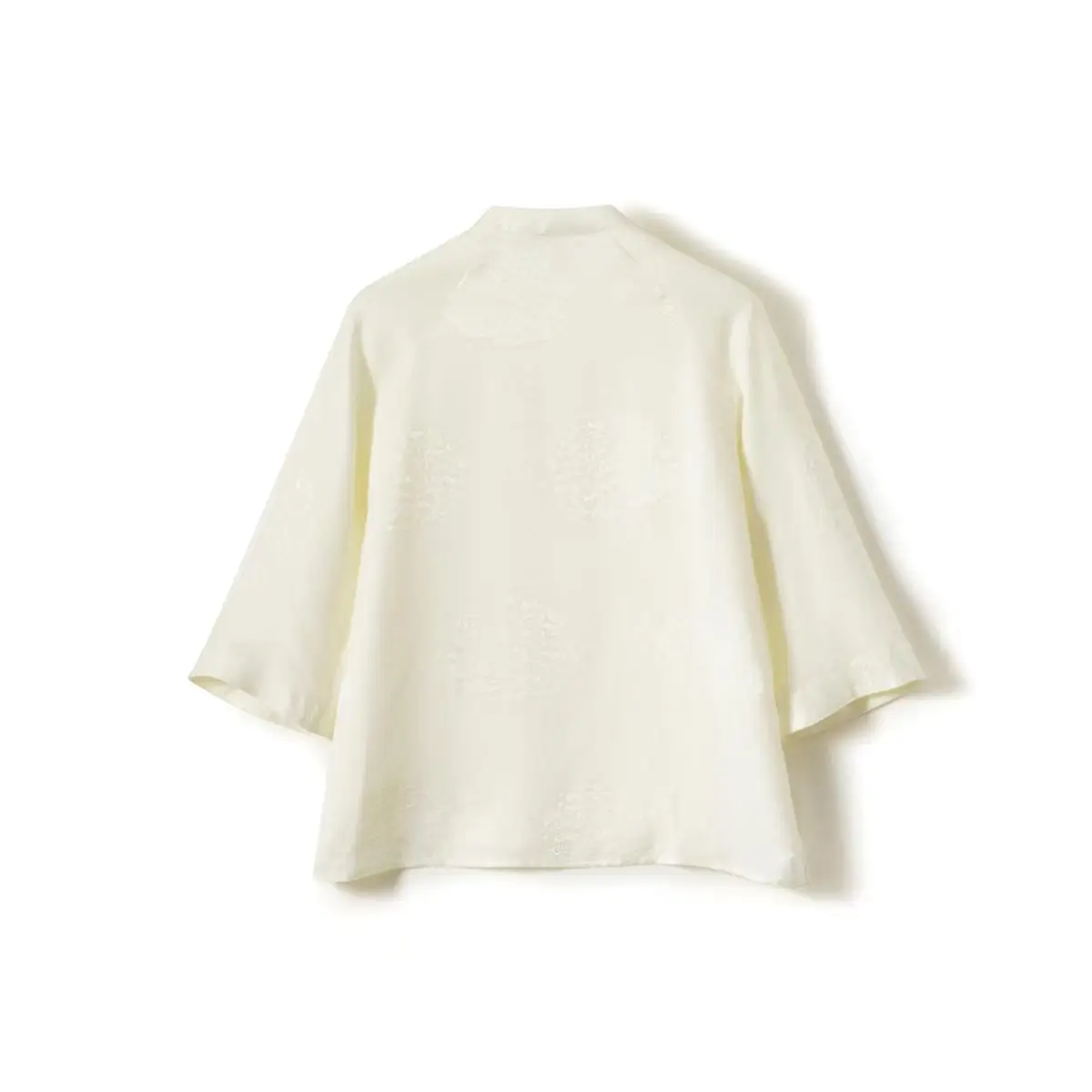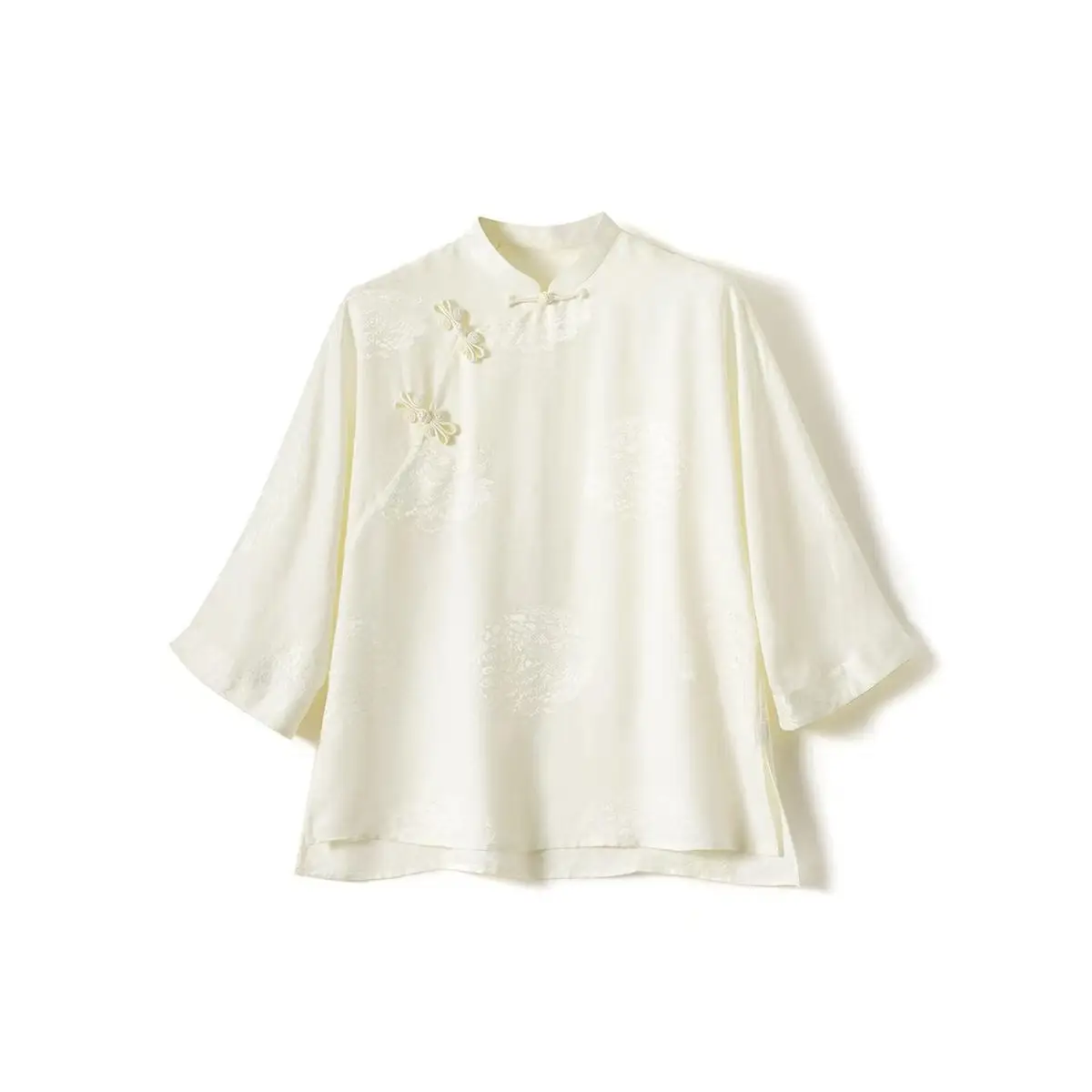 This short blouse uses 22 Momme of heavy mulberry silk fabric, through the intangible cultural heritage jacquard process weaving dark cloud-shaped pattern.