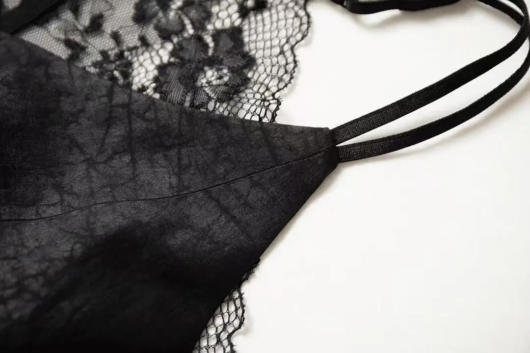 This camisole adopts an innovative double-layer structure : the outer layer is 16 Momme Xiang Yun Sha silk, showing a unique crack texture and breathable texture ; the inner layer uses 19 Momme silk satin to ensure comfortable wear.