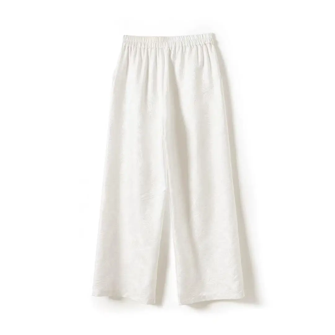 This pant uses 22 Momme heavy crepe satin mulberry silk fabric, through the ‘warp and weft twist’ process to form a unique fine crepe.